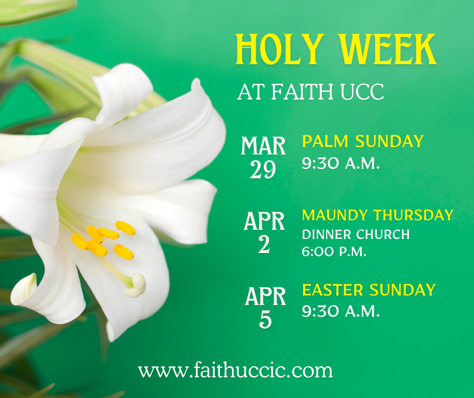 Faith United Church of Christ is an Open and Affirming, Just Peace, Economic Justice Covenant, Accessible-to-All church. Our congregation is a casual yet committed, diverse yet united, intimate yet fun-loving, spiritual yet practical, and rooted yet modern gathering of Christians who care for one another and the world.